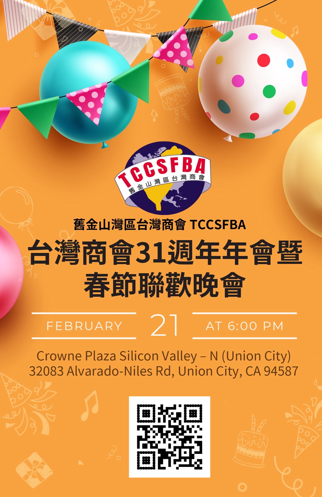 我們的年會預訂於2/21/2026 晚上在Crown Plaza- Union City舉辦